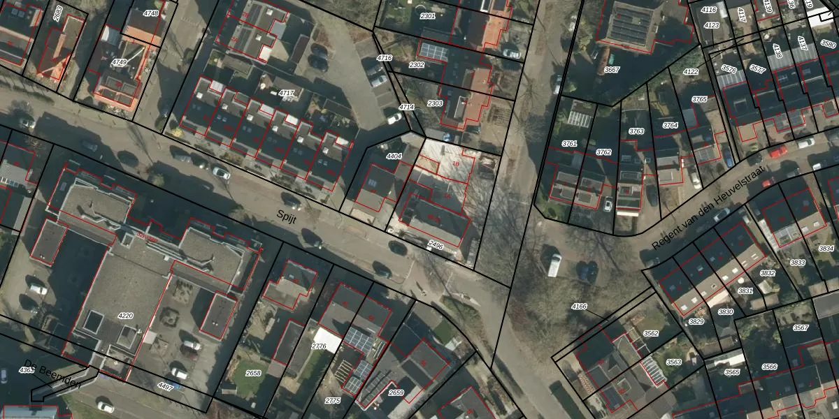 Het perceel waarop Spijt 49 staat heeft een oppervlakte van 539 m². Dit is een groot perceel. De perceeloppervlakte wordt geregistreerd door het Kadaster. Gedetailleerde informatie over de maten van dit perceel kunt u vinden in het rapport Kadastrale kaart met maatvoering van Spijt 49.