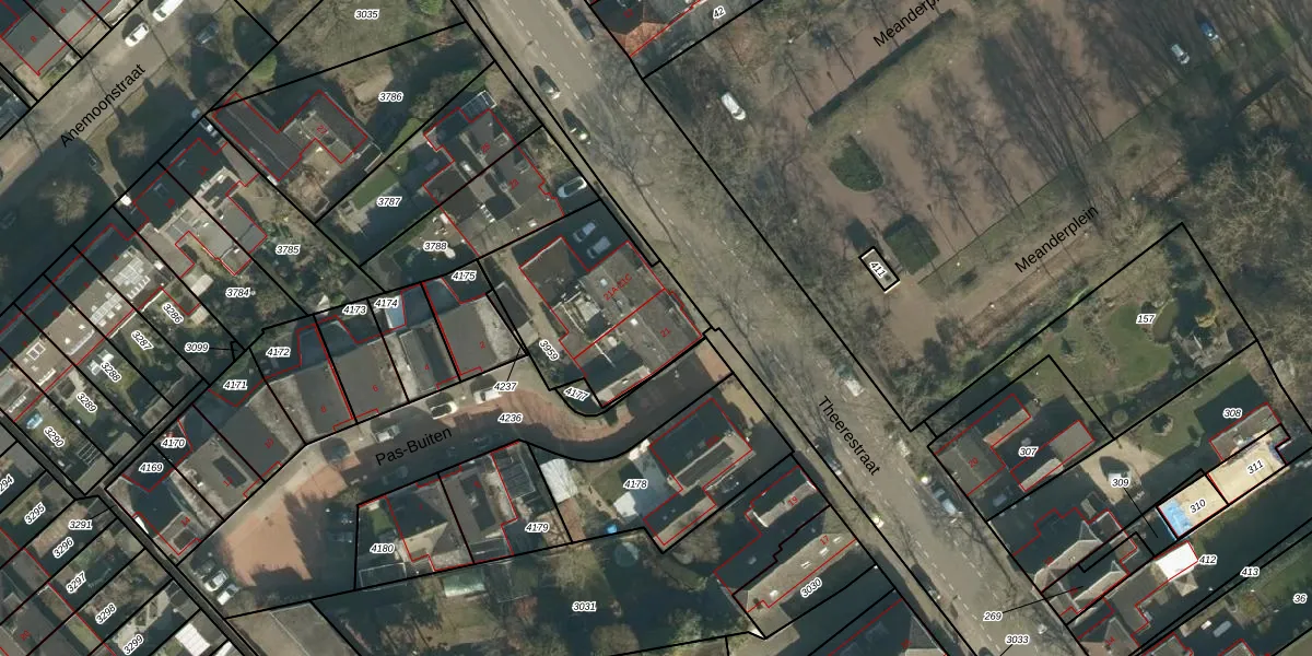 Het perceel waarop Theerestraat 21 staat heeft een oppervlakte van 630 m². Dit is een groot perceel. De perceeloppervlakte wordt geregistreerd door het Kadaster. Gedetailleerde informatie over de maten van dit perceel kunt u vinden in het rapport Kadastrale kaart met maatvoering van Theerestraat 21.