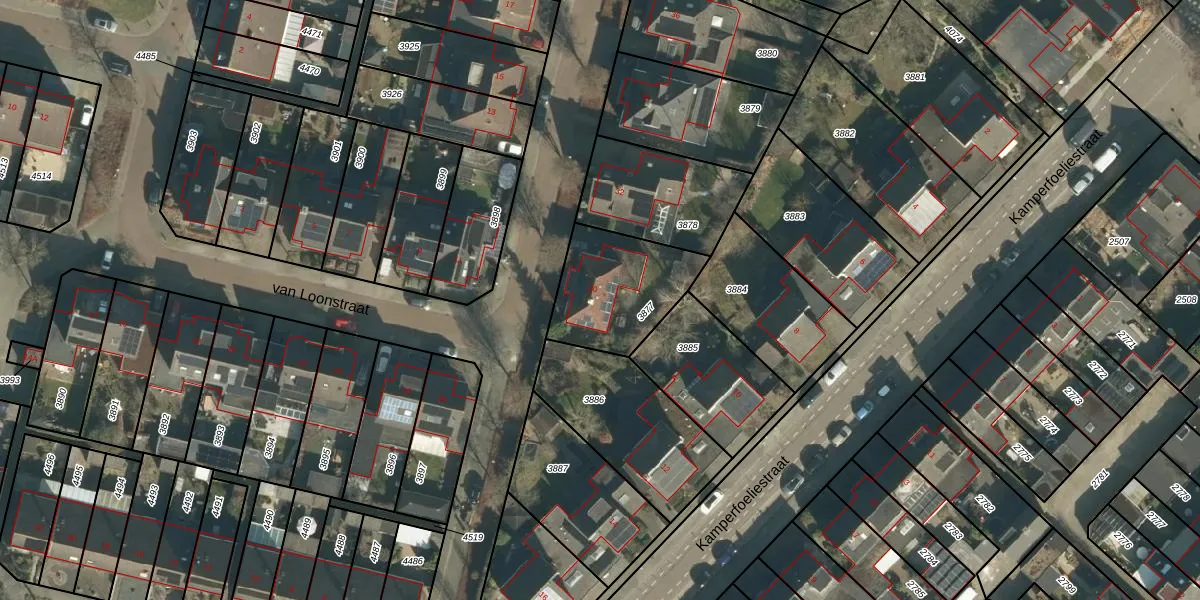 Het perceel waarop van Loonstraat 30 staat heeft een oppervlakte van 378 m². Dit is een groot perceel. De perceeloppervlakte wordt geregistreerd door het Kadaster. Gedetailleerde informatie over de maten van dit perceel kunt u vinden in het rapport Kadastrale kaart met maatvoering van van Loonstraat 30.