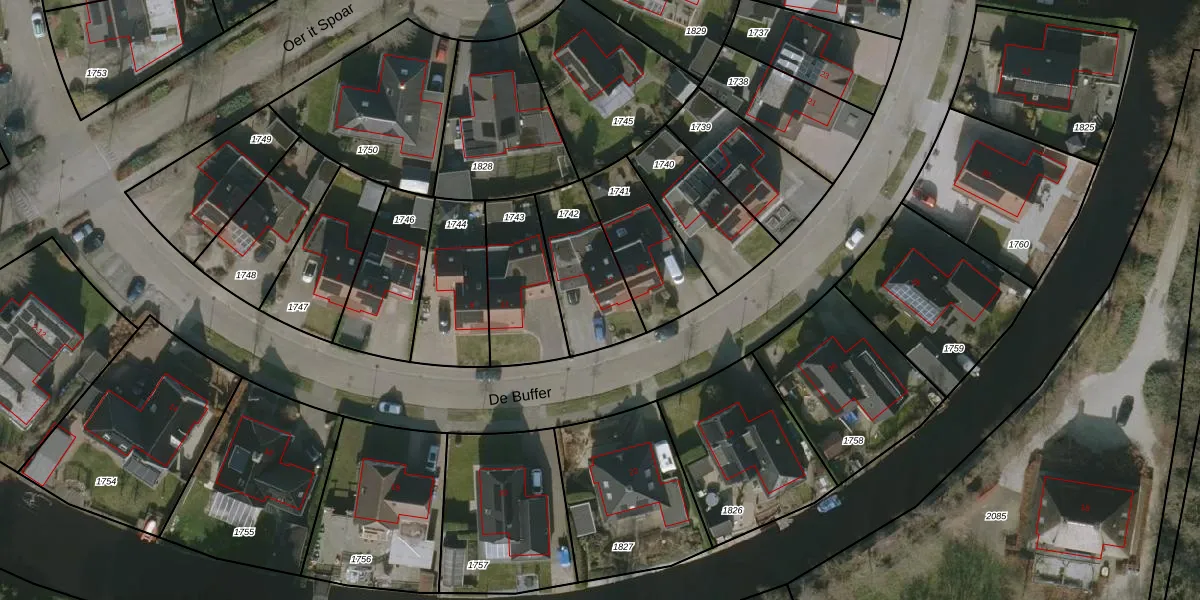 Het perceel waarop De Buffer 13 staat heeft een oppervlakte van 302 m². Dit is een groot perceel. De perceeloppervlakte wordt geregistreerd door het Kadaster. Gedetailleerde informatie over de maten van dit perceel kunt u vinden in het rapport Kadastrale kaart met maatvoering van De Buffer 13.