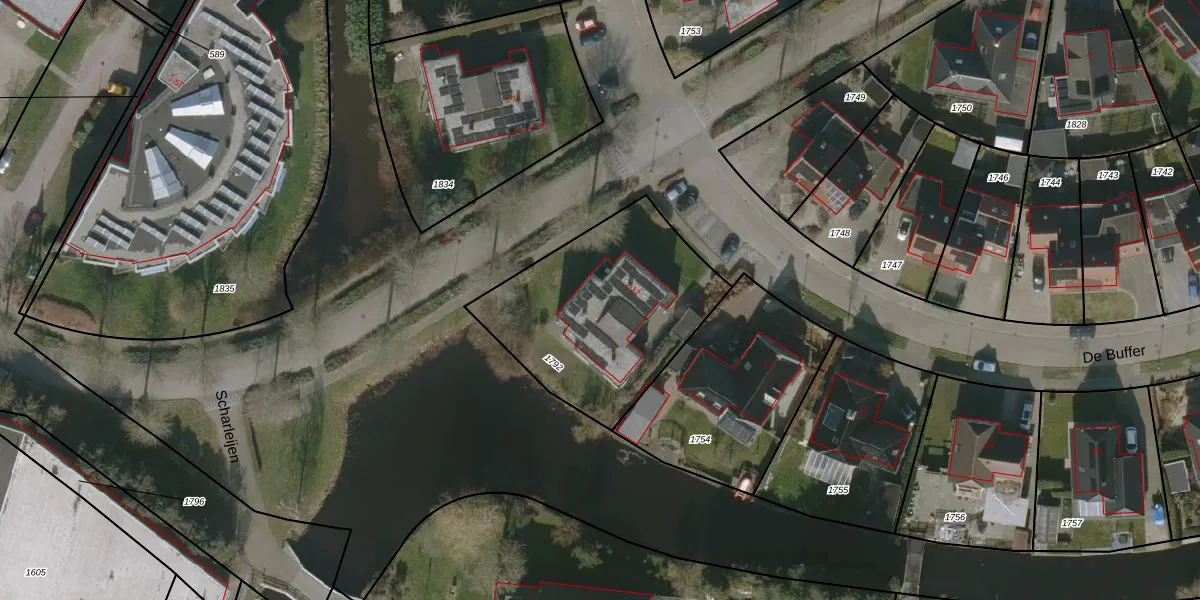 Het perceel waarop De Buffer 6 staat heeft een oppervlakte van 890 m². Dit is een groot perceel. De perceeloppervlakte wordt geregistreerd door het Kadaster. Gedetailleerde informatie over de maten van dit perceel kunt u vinden in het rapport Kadastrale kaart met maatvoering van De Buffer 6.