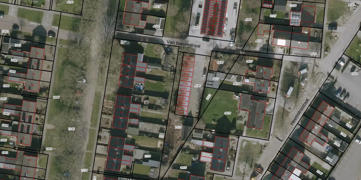 Van Burumstraat 1-G7 is gelegen op kadastraal perceel LWR02A4185. Deze kadastrale aanduiding is uniek en wordt gebruikt door het Kadaster om eigendomsrechten en andere zakelijke rechten vast te leggen. Het perceel maakt onderdeel uit van de kadastrale gemeente Langweer.