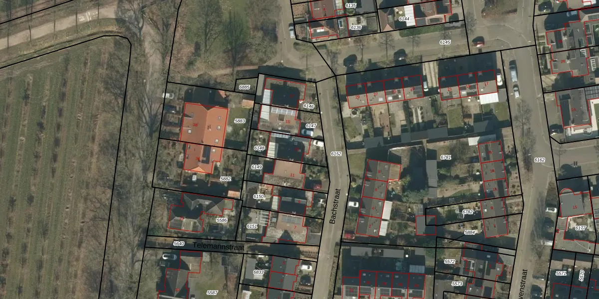 Het perceel waarop Bachstraat 13 staat heeft een oppervlakte van 226 m². Dit is een middelgroot perceel. De perceeloppervlakte wordt geregistreerd door het Kadaster. Gedetailleerde informatie over de maten van dit perceel kunt u vinden in het rapport Kadastrale kaart met maatvoering van Bachstraat 13.