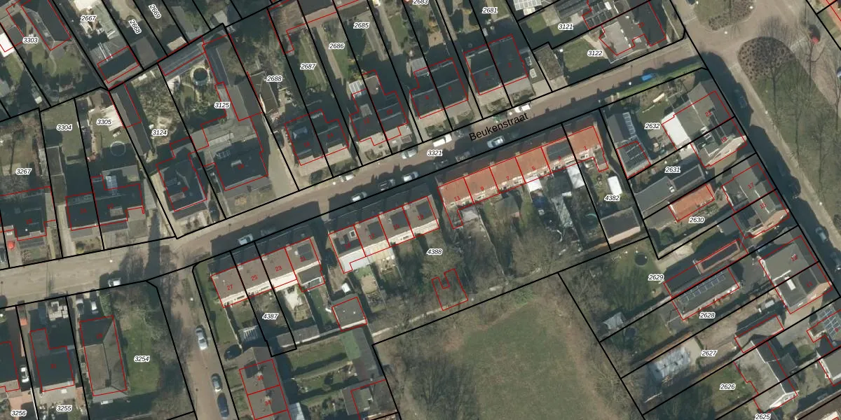Beukenstraat 13 is gelegen op kadastraal perceel ODR01H4388. Deze kadastrale aanduiding is uniek en wordt gebruikt door het Kadaster om eigendomsrechten en andere zakelijke rechten vast te leggen. Het perceel maakt onderdeel uit van de kadastrale gemeente Sint Oedenrode.