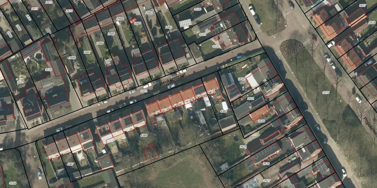 Beukenstraat 5 is gelegen op kadastraal perceel ODR01H4388. Deze kadastrale aanduiding is uniek en wordt gebruikt door het Kadaster om eigendomsrechten en andere zakelijke rechten vast te leggen. Het perceel maakt onderdeel uit van de kadastrale gemeente Sint Oedenrode.