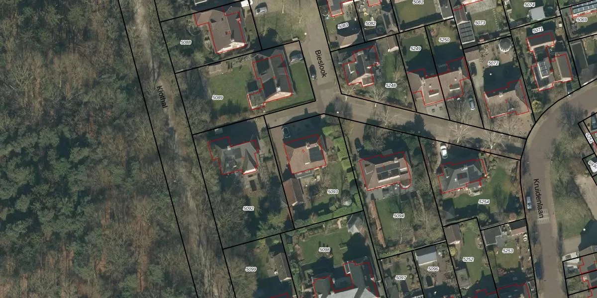 Bieslook 5 is gelegen op kadastraal perceel ODR01I5093. Deze kadastrale aanduiding is uniek en wordt gebruikt door het Kadaster om eigendomsrechten en andere zakelijke rechten vast te leggen. Het perceel maakt onderdeel uit van de kadastrale gemeente Sint Oedenrode.