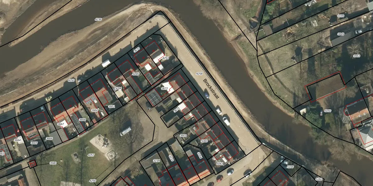 Het perceel waarop Brockstraat 13 staat heeft een oppervlakte van 5480 m². Dit is een zeer groot perceel. De perceeloppervlakte wordt geregistreerd door het Kadaster. Gedetailleerde informatie over de maten van dit perceel kunt u vinden in het rapport Kadastrale kaart met maatvoering van Brockstraat 13.