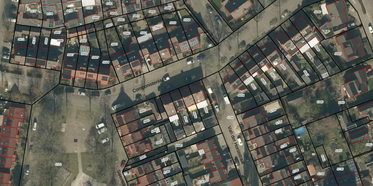 Componistenlaan 54 is gelegen op kadastraal perceel ODR01I5656. Deze kadastrale aanduiding is uniek en wordt gebruikt door het Kadaster om eigendomsrechten en andere zakelijke rechten vast te leggen. Het perceel maakt onderdeel uit van de kadastrale gemeente Sint Oedenrode.