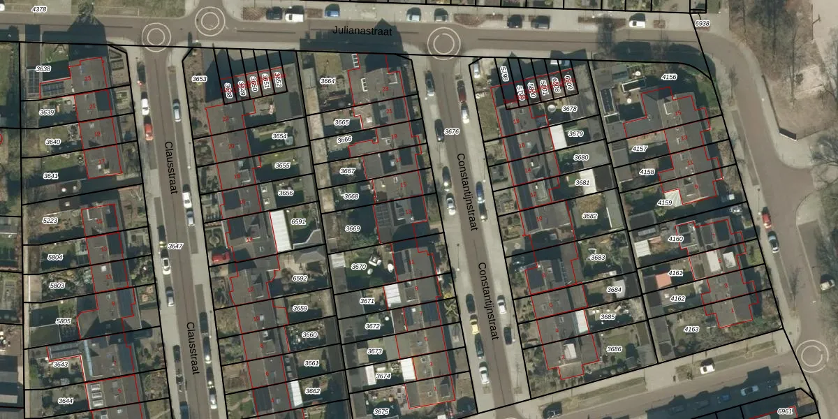 Constantijnstraat 13 is gelegen op kadastraal perceel ODR01I3669. Deze kadastrale aanduiding is uniek en wordt gebruikt door het Kadaster om eigendomsrechten en andere zakelijke rechten vast te leggen. Het perceel maakt onderdeel uit van de kadastrale gemeente Sint Oedenrode.