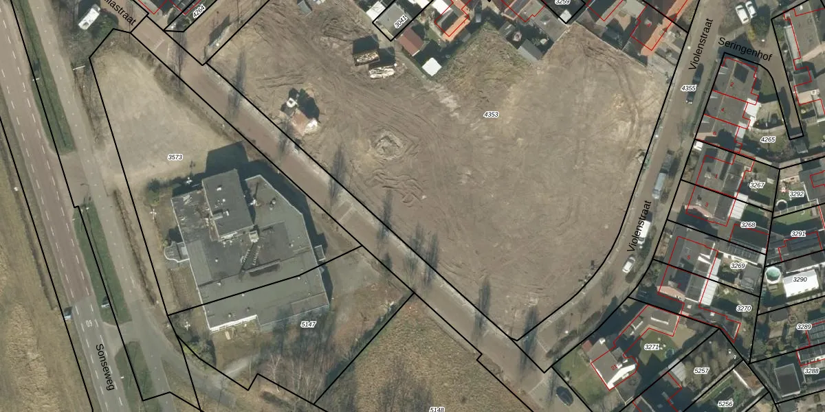 Het perceel waarop Dahliastraat 5 staat heeft een oppervlakte van 6590 m². Dit is een zeer groot perceel. De perceeloppervlakte wordt geregistreerd door het Kadaster. Gedetailleerde informatie over de maten van dit perceel kunt u vinden in het rapport Kadastrale kaart met maatvoering van Dahliastraat 5.