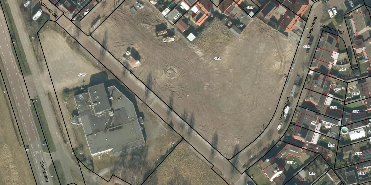 Het perceel waarop Dahliastraat 7-01 staat heeft een oppervlakte van 6590 m². Dit is een zeer groot perceel. De perceeloppervlakte wordt geregistreerd door het Kadaster. Gedetailleerde informatie over de maten van dit perceel kunt u vinden in het rapport Kadastrale kaart met maatvoering van Dahliastraat 7-01.