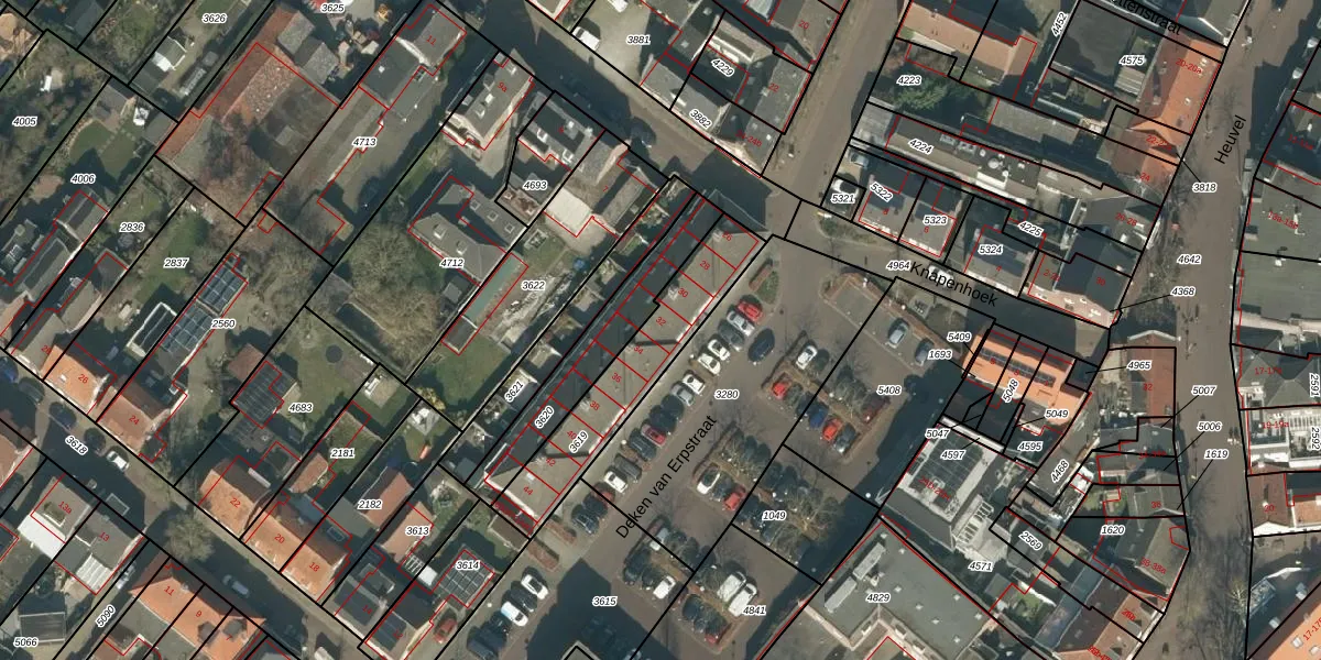 Deken van Erpstraat 32 is gelegen op kadastraal perceel ODR01G3619. Deze kadastrale aanduiding is uniek en wordt gebruikt door het Kadaster om eigendomsrechten en andere zakelijke rechten vast te leggen. Het perceel maakt onderdeel uit van de kadastrale gemeente Sint Oedenrode.