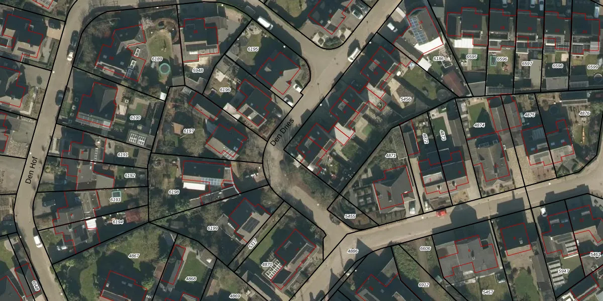 Het perceel waarop Den Dries 2 staat heeft een oppervlakte van 1291 m². Dit is een zeer groot perceel. De perceeloppervlakte wordt geregistreerd door het Kadaster. Gedetailleerde informatie over de maten van dit perceel kunt u vinden in het rapport Kadastrale kaart met maatvoering van Den Dries 2.