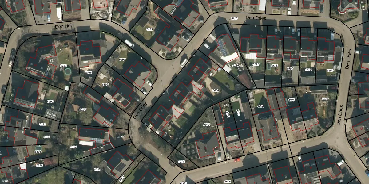 Het perceel waarop Den Dries 8 staat heeft een oppervlakte van 1291 m². Dit is een zeer groot perceel. De perceeloppervlakte wordt geregistreerd door het Kadaster. Gedetailleerde informatie over de maten van dit perceel kunt u vinden in het rapport Kadastrale kaart met maatvoering van Den Dries 8.