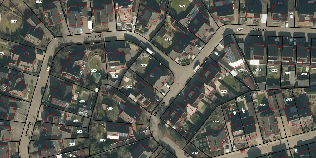 Het perceel waarop Den Dries 9 staat heeft een oppervlakte van 413 m². Dit is een groot perceel. De perceeloppervlakte wordt geregistreerd door het Kadaster. Gedetailleerde informatie over de maten van dit perceel kunt u vinden in het rapport Kadastrale kaart met maatvoering van Den Dries 9.