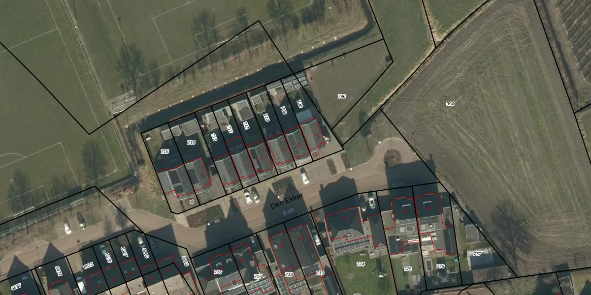 Het perceel waarop Den Ekker 13 staat heeft een oppervlakte van 175 m². Dit is een middelgroot perceel. De perceeloppervlakte wordt geregistreerd door het Kadaster. Gedetailleerde informatie over de maten van dit perceel kunt u vinden in het rapport Kadastrale kaart met maatvoering van Den Ekker 13.