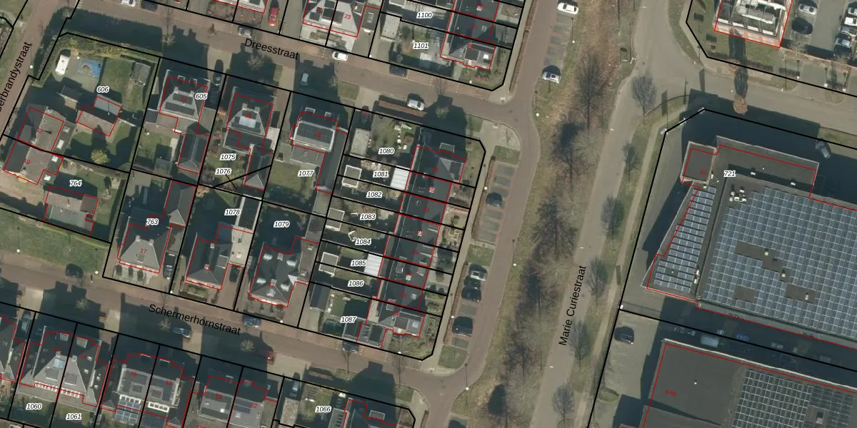 Gebruik de zoekbalk of klik op een perceel voor informatie over de adressen binnen dit perceel.