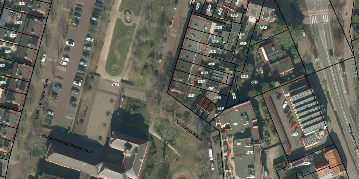 Gebruik de zoekbalk of klik op een perceel voor informatie over de adressen binnen dit perceel.