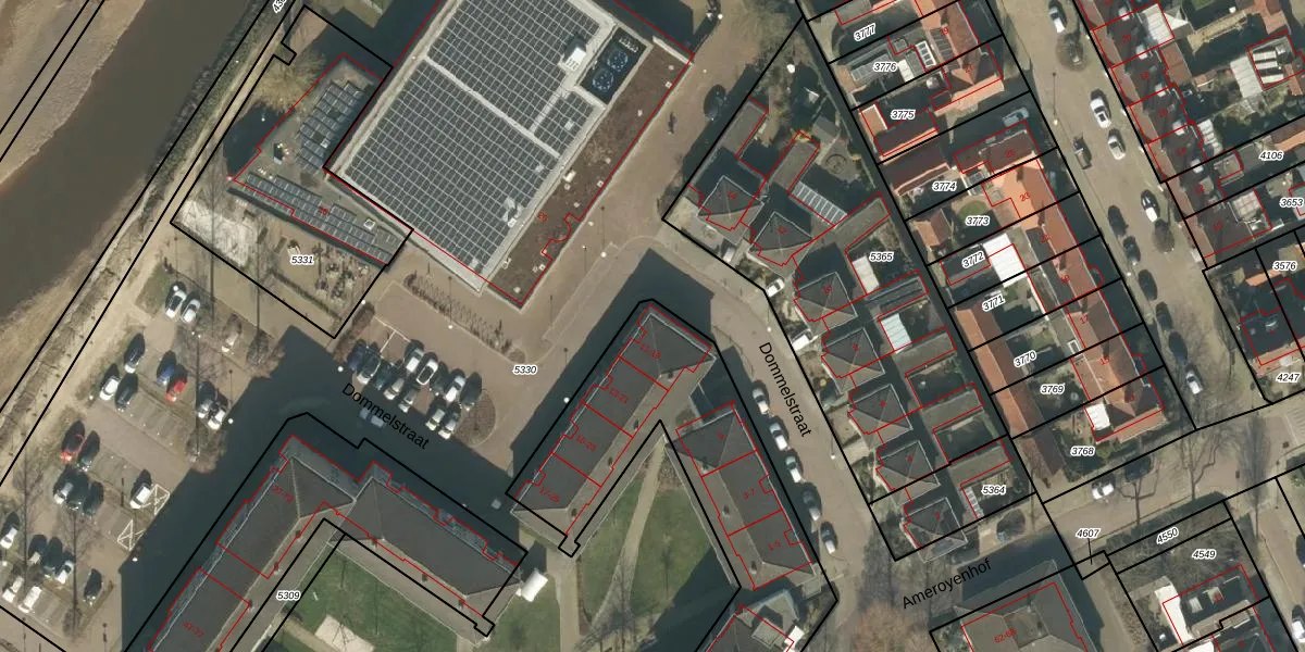 Het perceel waarop Dommelstraat 11 staat heeft een oppervlakte van 3735 m². Dit is een zeer groot perceel. De perceeloppervlakte wordt geregistreerd door het Kadaster. Gedetailleerde informatie over de maten van dit perceel kunt u vinden in het rapport Kadastrale kaart met maatvoering van Dommelstraat 11.