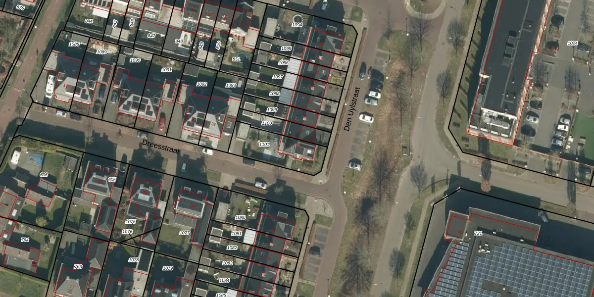 Gebruik de zoekbalk of klik op een perceel voor informatie over de adressen binnen dit perceel.