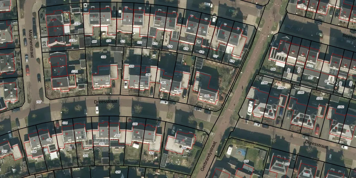 Gebruik de zoekbalk of klik op een perceel voor informatie over de adressen binnen dit perceel.