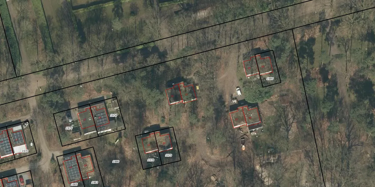 Het perceel waarop Grove Den 22 staat heeft een oppervlakte van 1,8 ha. Dit is een zeer groot perceel. De perceeloppervlakte wordt geregistreerd door het Kadaster. Gedetailleerde informatie over de maten van dit perceel kunt u vinden in het rapport Kadastrale kaart met maatvoering van Grove Den 22.