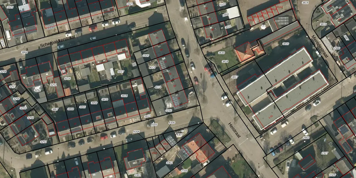Het perceel waarop Heistraat 33 staat heeft een oppervlakte van 366 m². Dit is een groot perceel. De perceeloppervlakte wordt geregistreerd door het Kadaster. Gedetailleerde informatie over de maten van dit perceel kunt u vinden in het rapport Kadastrale kaart met maatvoering van Heistraat 33.