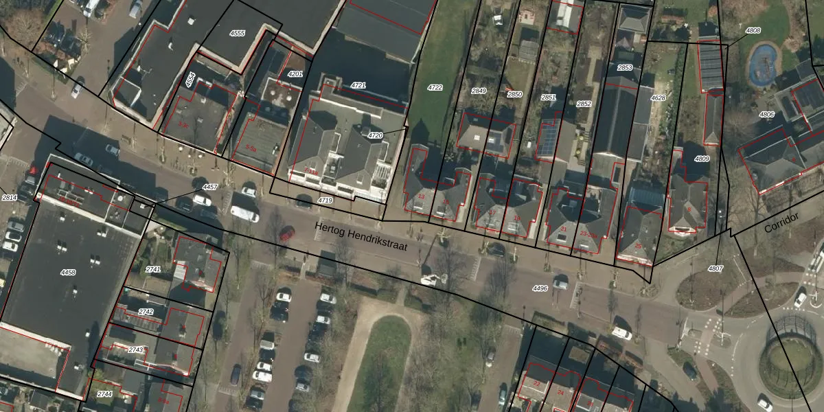 Hertog Hendrikstraat 13 is gelegen op kadastraal perceel ODR01G4722. Deze kadastrale aanduiding is uniek en wordt gebruikt door het Kadaster om eigendomsrechten en andere zakelijke rechten vast te leggen. Het perceel maakt onderdeel uit van de kadastrale gemeente Sint Oedenrode.