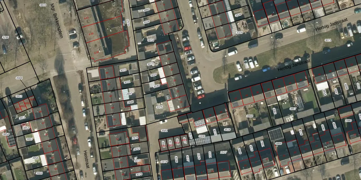 Het perceel waarop Hertog Janstraat 22 staat heeft een oppervlakte van 655 m². Dit is een groot perceel. De perceeloppervlakte wordt geregistreerd door het Kadaster. Gedetailleerde informatie over de maten van dit perceel kunt u vinden in het rapport Kadastrale kaart met maatvoering van Hertog Janstraat 22.