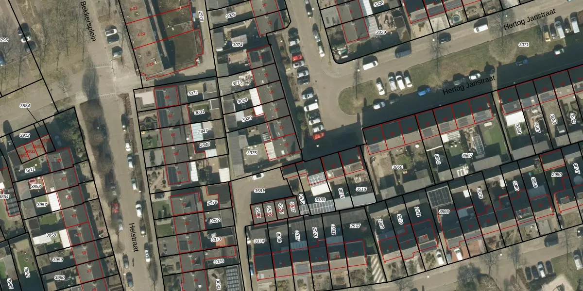 Het perceel waarop Hertog Janstraat 24 staat heeft een oppervlakte van 655 m². Dit is een groot perceel. De perceeloppervlakte wordt geregistreerd door het Kadaster. Gedetailleerde informatie over de maten van dit perceel kunt u vinden in het rapport Kadastrale kaart met maatvoering van Hertog Janstraat 24.