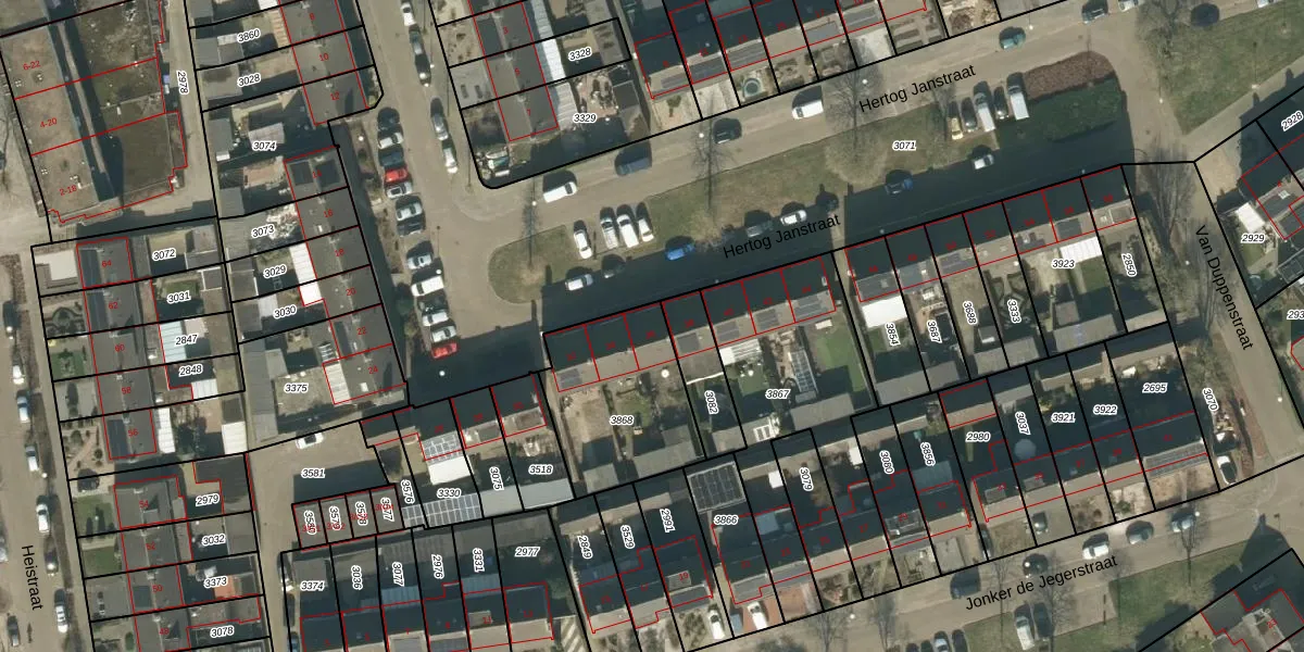 Het perceel waarop Hertog Janstraat 36 staat heeft een oppervlakte van 525 m². Dit is een groot perceel. De perceeloppervlakte wordt geregistreerd door het Kadaster. Gedetailleerde informatie over de maten van dit perceel kunt u vinden in het rapport Kadastrale kaart met maatvoering van Hertog Janstraat 36.