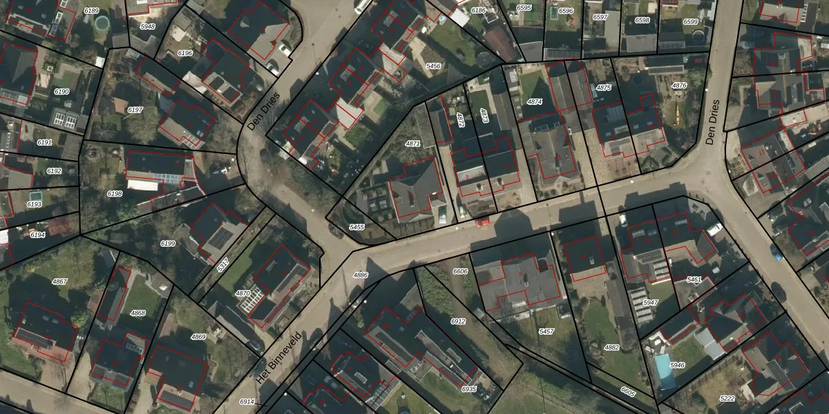 Het Binneveld 5 is gelegen op kadastraal perceel ODR01I4871. Deze kadastrale aanduiding is uniek en wordt gebruikt door het Kadaster om eigendomsrechten en andere zakelijke rechten vast te leggen. Het perceel maakt onderdeel uit van de kadastrale gemeente Sint Oedenrode.