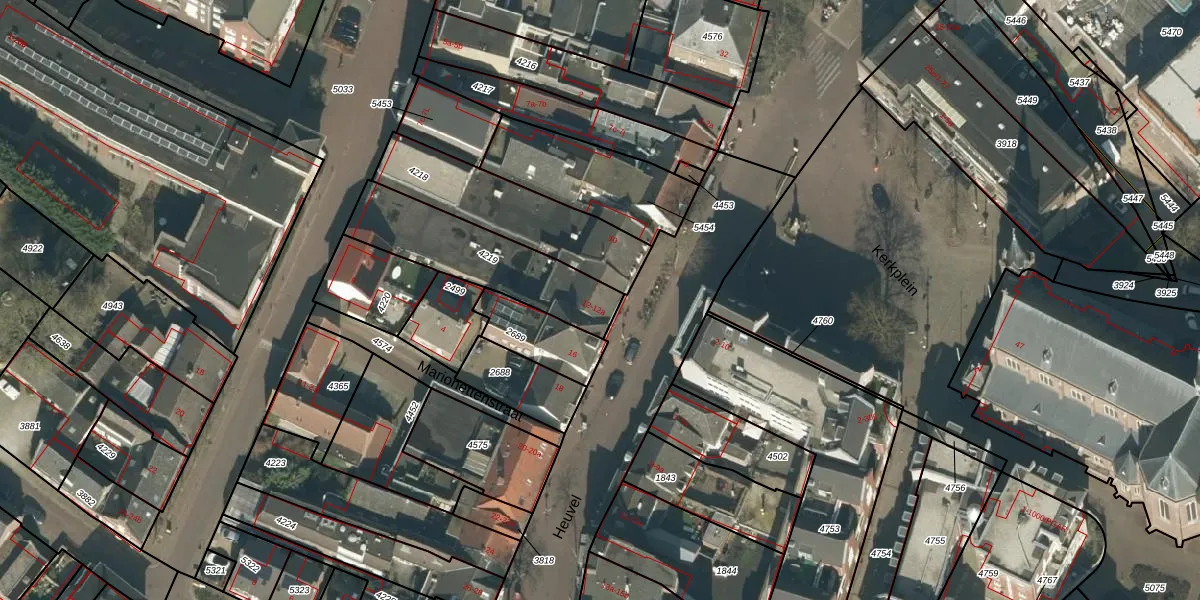 Het perceel waarop Heuvel 12 staat heeft een oppervlakte van 434 m². Dit is een groot perceel. De perceeloppervlakte wordt geregistreerd door het Kadaster. Gedetailleerde informatie over de maten van dit perceel kunt u vinden in het rapport Kadastrale kaart met maatvoering van Heuvel 12.