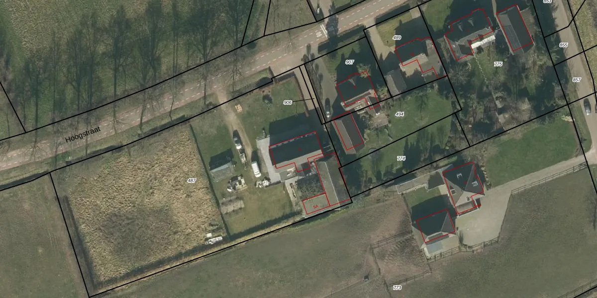 Hoogstraat 5 is gelegen op kadastraal perceel ODR01N487. Deze kadastrale aanduiding is uniek en wordt gebruikt door het Kadaster om eigendomsrechten en andere zakelijke rechten vast te leggen. Het perceel maakt onderdeel uit van de kadastrale gemeente Sint Oedenrode.