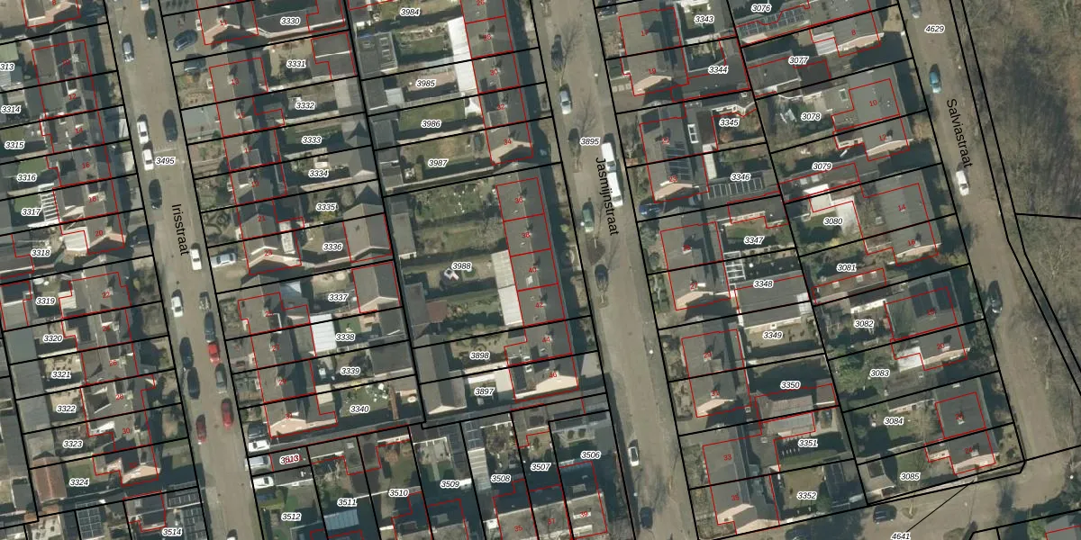 Het perceel waarop Jasmijnstraat 40 staat heeft een oppervlakte van 963 m². Dit is een groot perceel. De perceeloppervlakte wordt geregistreerd door het Kadaster. Gedetailleerde informatie over de maten van dit perceel kunt u vinden in het rapport Kadastrale kaart met maatvoering van Jasmijnstraat 40.