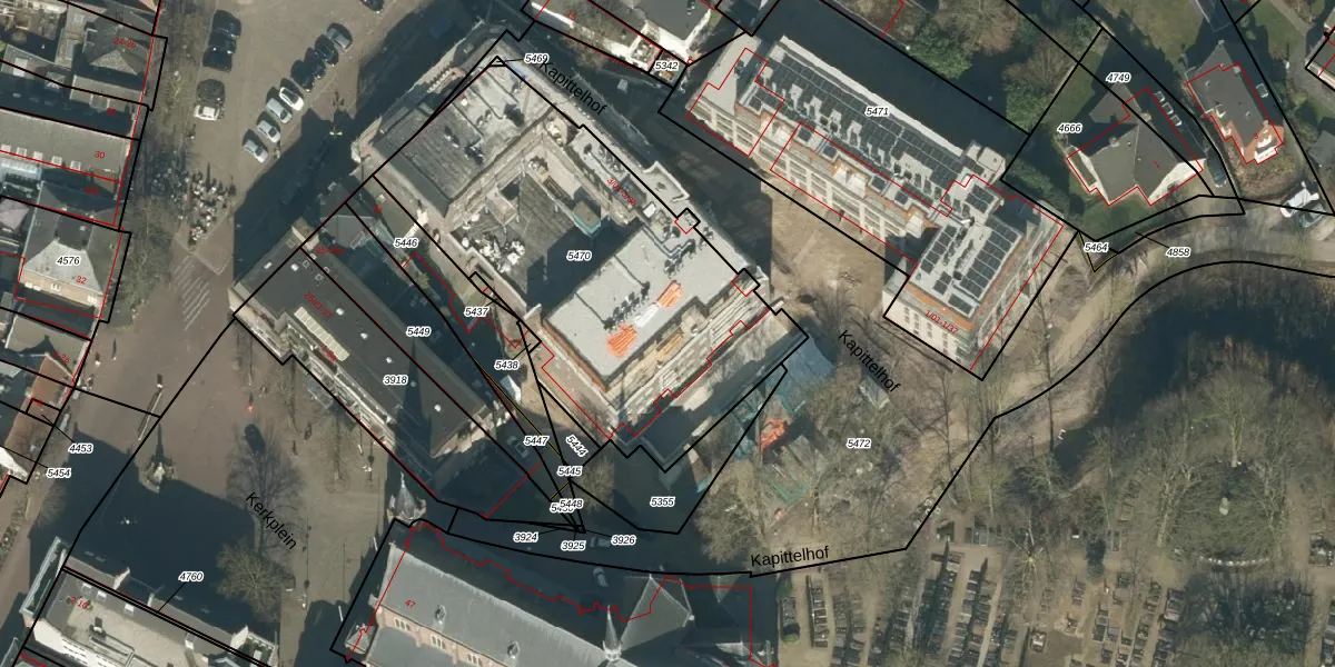 Het perceel waarop Kapittelhof 3-12 staat heeft een oppervlakte van 1846 m². Dit is een zeer groot perceel. De perceeloppervlakte wordt geregistreerd door het Kadaster. Gedetailleerde informatie over de maten van dit perceel kunt u vinden in het rapport Kadastrale kaart met maatvoering van Kapittelhof 3-12.