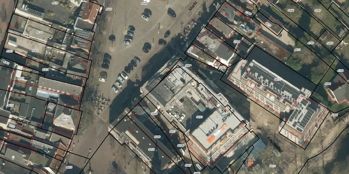 Het perceel waarop Kapittelhof 3-17 staat heeft een oppervlakte van 1846 m². Dit is een zeer groot perceel. De perceeloppervlakte wordt geregistreerd door het Kadaster. Gedetailleerde informatie over de maten van dit perceel kunt u vinden in het rapport Kadastrale kaart met maatvoering van Kapittelhof 3-17.