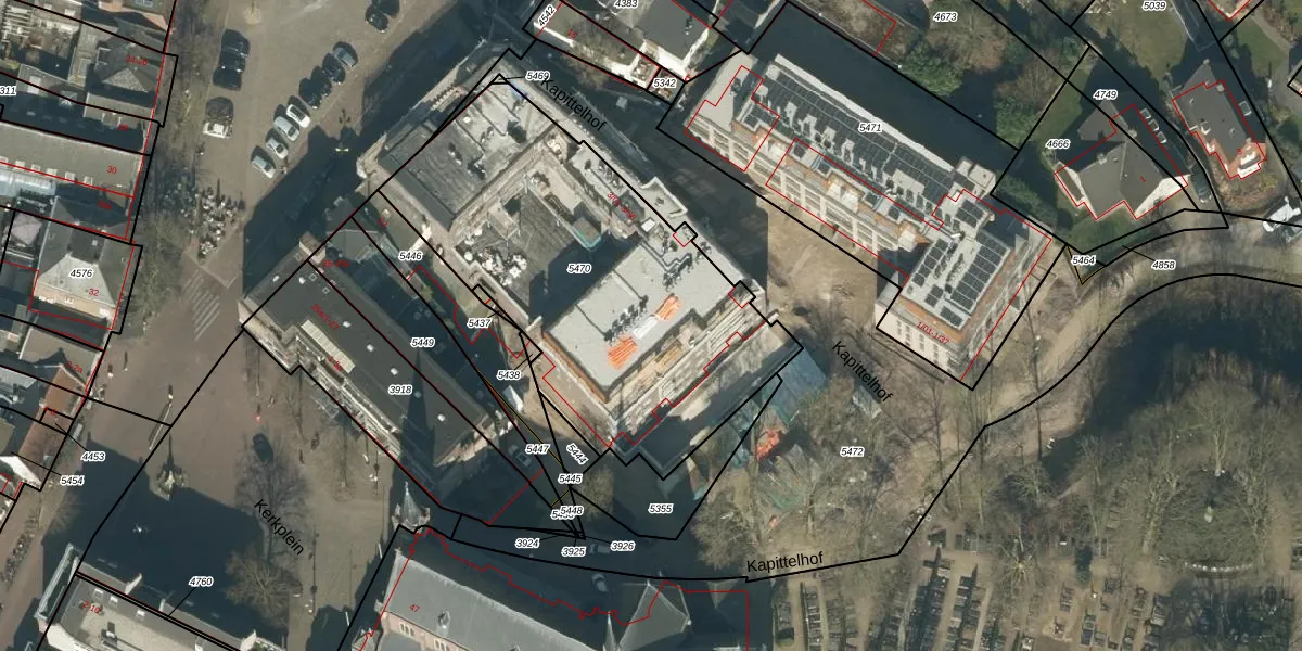 Het perceel waarop Kapittelhof 3-22 staat heeft een oppervlakte van 1846 m². Dit is een zeer groot perceel. De perceeloppervlakte wordt geregistreerd door het Kadaster. Gedetailleerde informatie over de maten van dit perceel kunt u vinden in het rapport Kadastrale kaart met maatvoering van Kapittelhof 3-22.