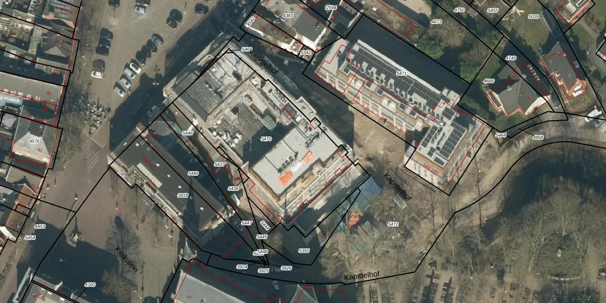 Het perceel waarop Kapittelhof 3-31 staat heeft een oppervlakte van 1846 m². Dit is een zeer groot perceel. De perceeloppervlakte wordt geregistreerd door het Kadaster. Gedetailleerde informatie over de maten van dit perceel kunt u vinden in het rapport Kadastrale kaart met maatvoering van Kapittelhof 3-31.
