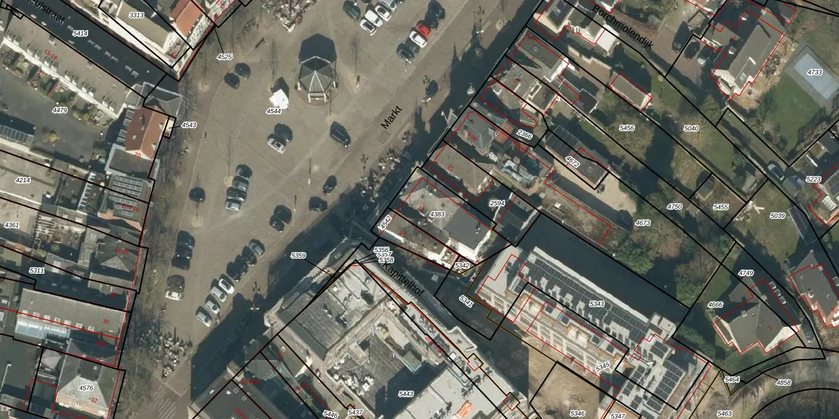 Het perceel waarop Markt 13 staat heeft een oppervlakte van 298 m². Dit is een middelgroot perceel. De perceeloppervlakte wordt geregistreerd door het Kadaster. Gedetailleerde informatie over de maten van dit perceel kunt u vinden in het rapport Kadastrale kaart met maatvoering van Markt 13.