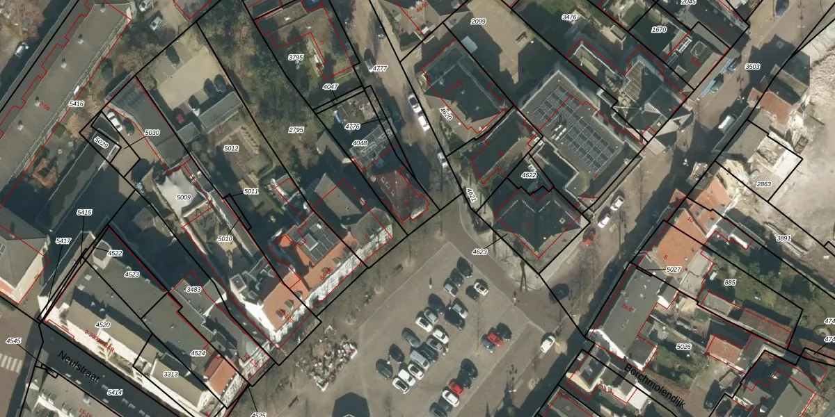 Het perceel waarop Markt 4 staat heeft een oppervlakte van 360 m². Dit is een groot perceel. De perceeloppervlakte wordt geregistreerd door het Kadaster. Gedetailleerde informatie over de maten van dit perceel kunt u vinden in het rapport Kadastrale kaart met maatvoering van Markt 4.