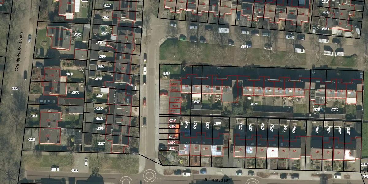 Het perceel waarop Mauritsstraat 65 staat heeft een oppervlakte van 477 m². Dit is een groot perceel. De perceeloppervlakte wordt geregistreerd door het Kadaster. Gedetailleerde informatie over de maten van dit perceel kunt u vinden in het rapport Kadastrale kaart met maatvoering van Mauritsstraat 65.
