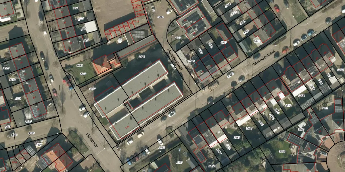 Merodestraat 21 is gelegen op kadastraal perceel ODR01C3816. Deze kadastrale aanduiding is uniek en wordt gebruikt door het Kadaster om eigendomsrechten en andere zakelijke rechten vast te leggen. Het perceel maakt onderdeel uit van de kadastrale gemeente Sint Oedenrode.