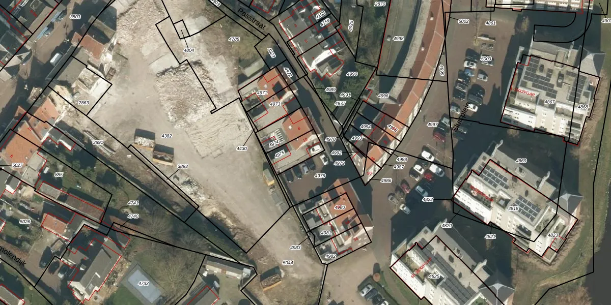 Passtraat 10 is gelegen op kadastraal perceel ODR01G4975. Deze kadastrale aanduiding is uniek en wordt gebruikt door het Kadaster om eigendomsrechten en andere zakelijke rechten vast te leggen. Het perceel maakt onderdeel uit van de kadastrale gemeente Sint Oedenrode.