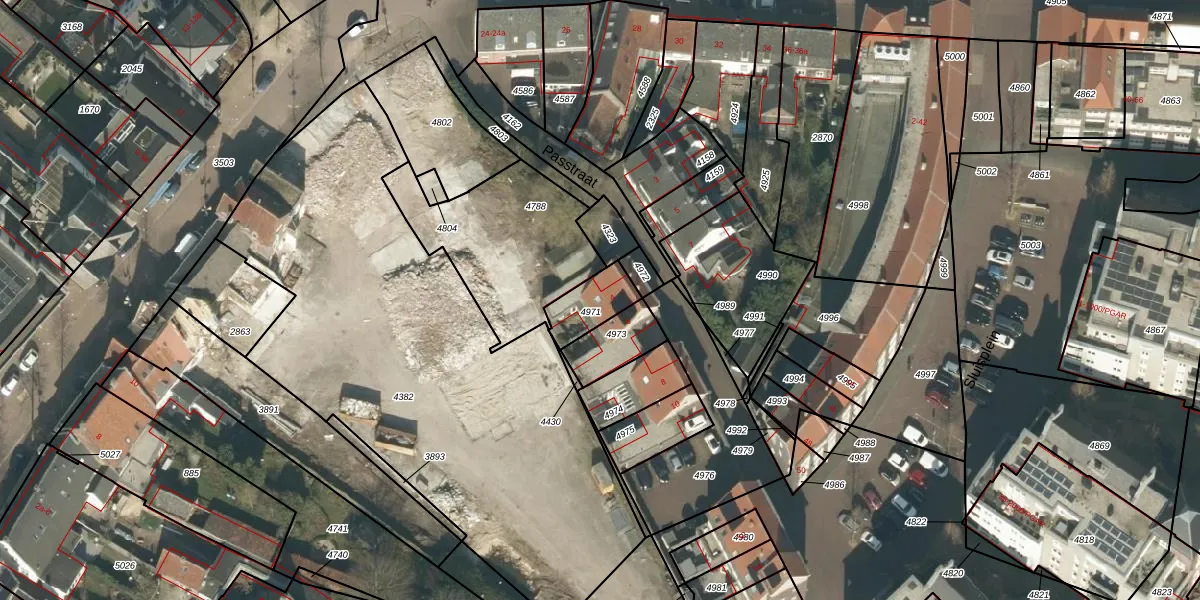 Passtraat 4 is gelegen op kadastraal perceel ODR01G4971. Deze kadastrale aanduiding is uniek en wordt gebruikt door het Kadaster om eigendomsrechten en andere zakelijke rechten vast te leggen. Het perceel maakt onderdeel uit van de kadastrale gemeente Sint Oedenrode.