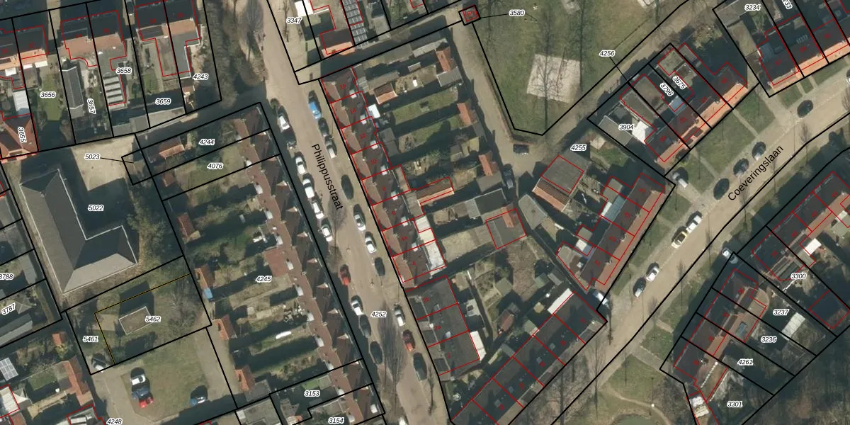 Het perceel waarop Philippusstraat 4-09 staat heeft een oppervlakte van 5480 m². Dit is een zeer groot perceel. De perceeloppervlakte wordt geregistreerd door het Kadaster. Gedetailleerde informatie over de maten van dit perceel kunt u vinden in het rapport Kadastrale kaart met maatvoering van Philippusstraat 4-09.