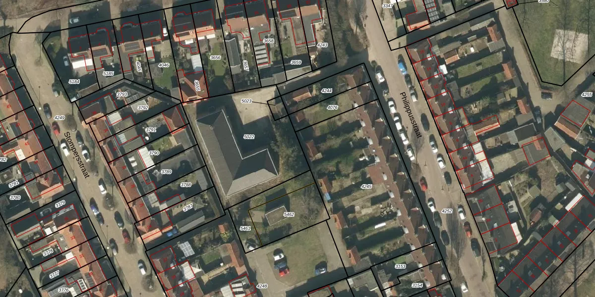 Het perceel waarop Philippusstraat 9-09 staat heeft een oppervlakte van 1093 m². Dit is een zeer groot perceel. De perceeloppervlakte wordt geregistreerd door het Kadaster. Gedetailleerde informatie over de maten van dit perceel kunt u vinden in het rapport Kadastrale kaart met maatvoering van Philippusstraat 9-09.