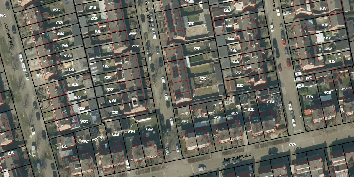 Het perceel waarop Primulastraat 31 staat heeft een oppervlakte van 832 m². Dit is een groot perceel. De perceeloppervlakte wordt geregistreerd door het Kadaster. Gedetailleerde informatie over de maten van dit perceel kunt u vinden in het rapport Kadastrale kaart met maatvoering van Primulastraat 31.