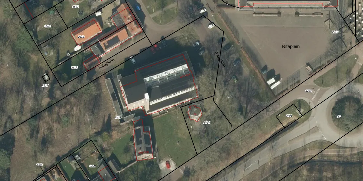 Het perceel waarop Ritaplein 4-02 staat heeft een oppervlakte van 6355 m². Dit is een zeer groot perceel. De perceeloppervlakte wordt geregistreerd door het Kadaster. Gedetailleerde informatie over de maten van dit perceel kunt u vinden in het rapport Kadastrale kaart met maatvoering van Ritaplein 4-02.