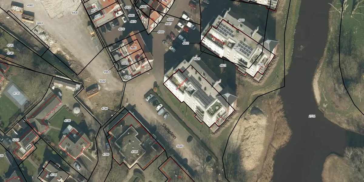 Sluisplein 93 is gelegen op kadastraal perceel ODR01G4825. Deze kadastrale aanduiding is uniek en wordt gebruikt door het Kadaster om eigendomsrechten en andere zakelijke rechten vast te leggen. Het perceel maakt onderdeel uit van de kadastrale gemeente Sint Oedenrode.